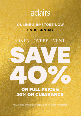 Adairs treating Linen Lovers to 40% off full-price and 20% off clearance items during their exclusive Linen Lovers Event. Hurry offer ends Sunday!