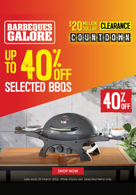 Score up to 40% OFF selected BBQ ranges at Barbeques Galore in their $20M Clearance Countdown. Stock is moving fast — don’t miss out!